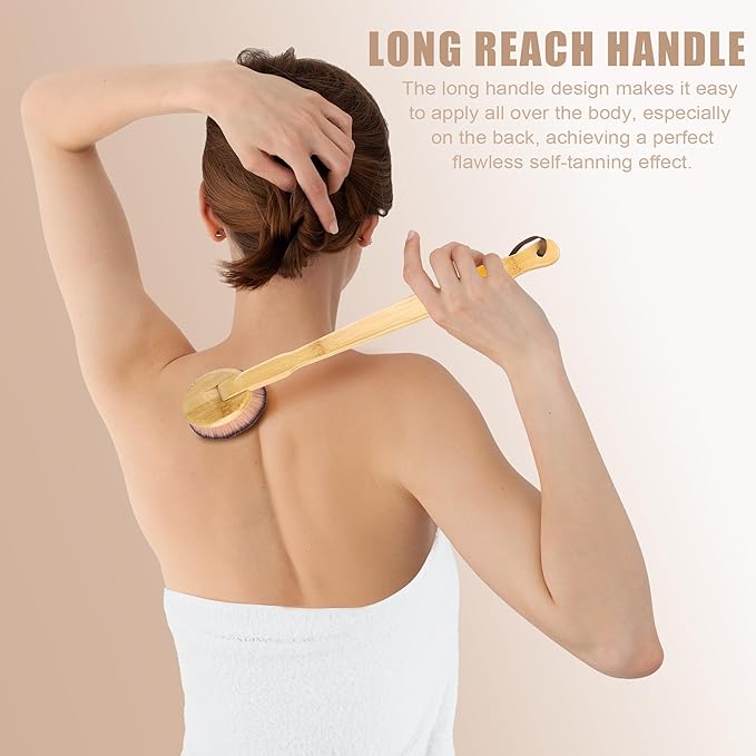 - 【Easily Apply the Back】 The length of the tanning brush is 14.17 inches, which is longer than other long-handle brushes on the market and can effectively reach your entire back. Designed with an ergonomic handle, the lotion applicator for back provides good control and extension without straining or awkward stretching. The suitable head size and ultra-soft skin-friendly bristles of self tanner back applicator provide a smooth, even application, so you can achieve a flawless tan