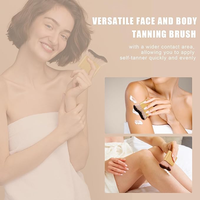 - 【Skin-friendly Bristles, Apply Flawlessly】 Every tanning brush for self tan is made of ultrafine, soft, and high-density synthetic bristles, which are less likely to fall out and won't cause any stinging sensation when in contact with the body. The versatile face and body brush for self tanner features a wavy head design that increases the contact area with the body and enhances the blending effect, without leaving streaks or spots, making the process fast and hassle-free