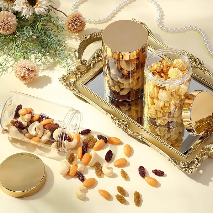 - What You Receive: there are 4 pieces plastic jars with gold screw-on lids; They are durable and refillable, measuring about 2.8 inches/ 7.1 cm in diameter, 4.49 inches/ 11.4 cm in height, 12 oz in capacity