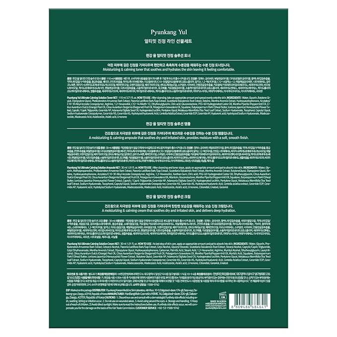 Pyunkang Yul PKY Ultimate Line Skincare Set, Mother's day gift for mom, Calming Solution Toner, Ampoule & Cream, Traditional Korean-Style Packaging, Zero-Irritation (3-item set)