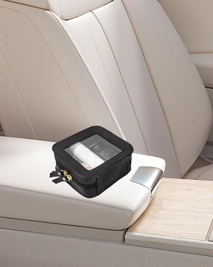 - Car Must Have Essential: Our car essentials small pouch travel toiletry bag is roomy to store your makeup brushes, lipstick, eyebrow pencil, make-up foundation, cables, chargersor and other little items.It make your daily things organized and protected.This clear mini toiletry bag can be a good car accessory fits in the center console or other parts of your car