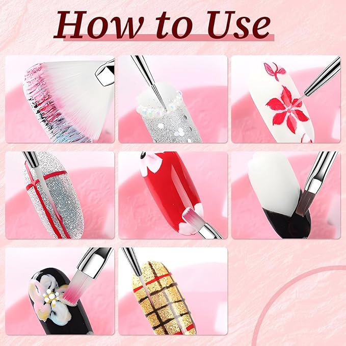 - 【Nail Art Brushes Set】15pcs Covers the range of brushes you will need, different brushes for different functions, some for-dotting flowers, and others for drawing lines or painting.