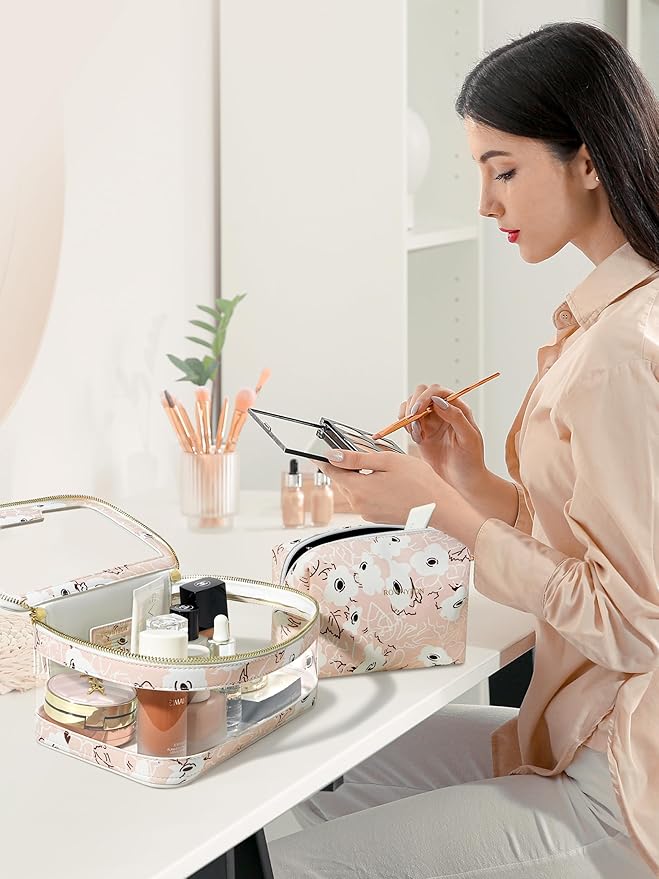 - Stylish Floral Design: Featuring a beautiful and vibrant floral print in soft pink and black hues, this makeup bag set adds a touch of cute to your beauty routine, making it a stylish accessory.