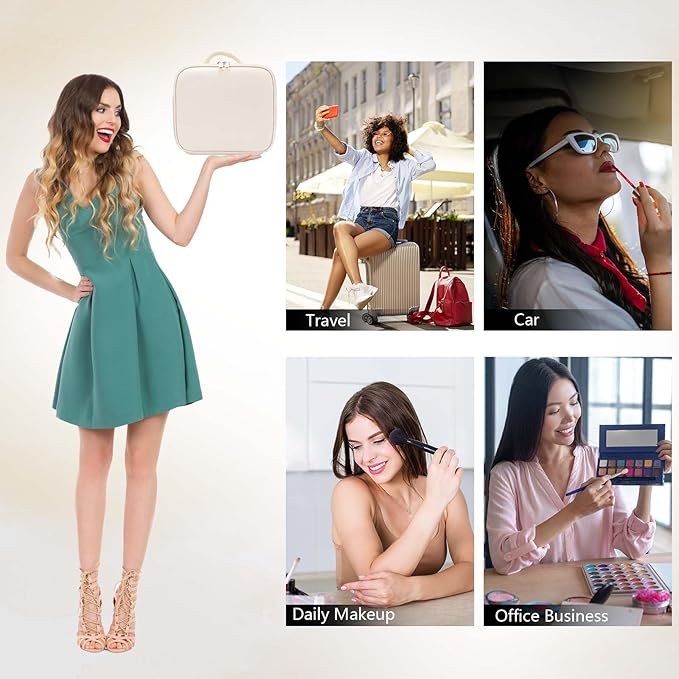 - 【Suitable For Various Scenarios】SLUMAZI travel makeup organizer with LED mirror can not only hold cosmetics, but also can put toiletries, skin care products, jewelry, electronic accessories, valuables, etc. Suitable for various scenarios, such as: home, travel, business trips, etc., is also a good gift.
