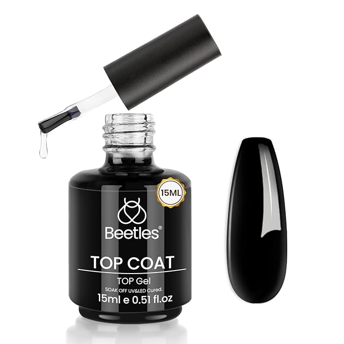 Beetles Gel Top Coat - 15ML Gel Polish No Wipe Top Coat for Nails Soak Off UV/LED Cured High Gloss Shine Long Lasting Protection