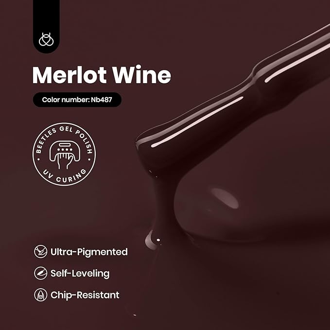 Beetles Burgundy Red Gel Polish - 15ML Hema-Free Maroon Wine Dark Red Gel Nail Polish High Gloss Soak Off Merlot Wine Fall Uv Nail Polish Manicure Salon Color Bottle 0.51 Fl Oz