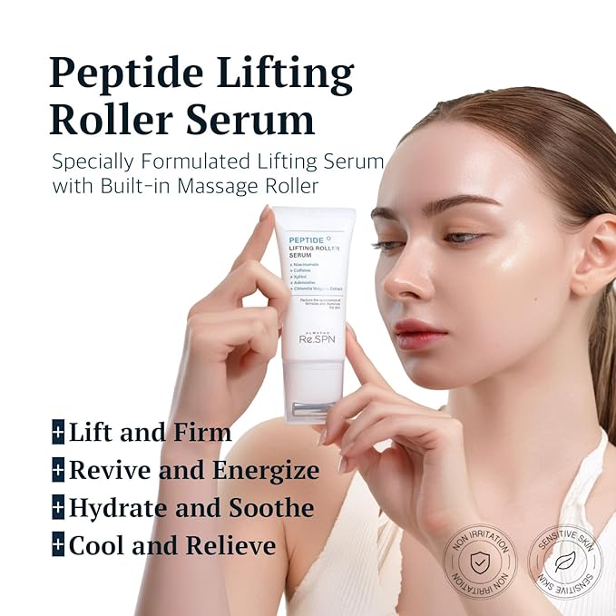 Re.SPN Peptide Lifting Roller Serum – For Wrinkles, Lifting & Pore Tightening on Face & Neck with Gua Sha Applicator, Vegan, Anti-wrinkle Peptide, Niacinamide, K-Beauty (1.69 fl oz)