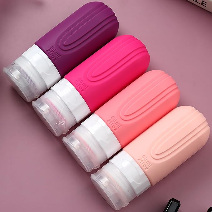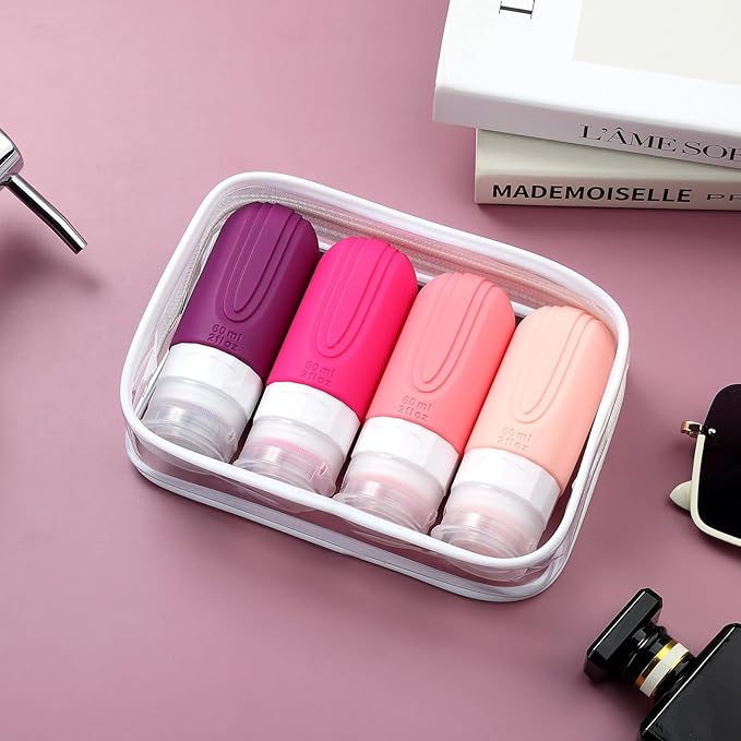 - TSA carry on approval: 4 pack 2 oz silicone travel bottles, very suitable for shampoo, conditioner, shower gel, lotion, hand sanitizer and shower gel. It is equipped with a high-quality zipper transparent wash bag, which saves space and allows you to travel long distance freely like a professional.