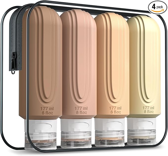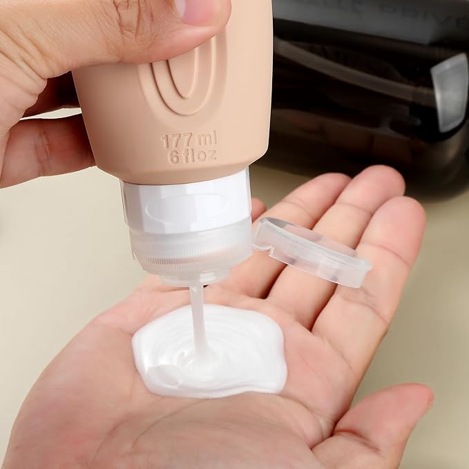 - Oversize 6oz travel bottle: Featuring a PVC toiletry bag, these travel-sized silicone bottles are perfect for storing and dispensing your favorite shampoos, lotions, and other liquids. Designed for convenience and durability, this travel set is a must-have for all your adventures.