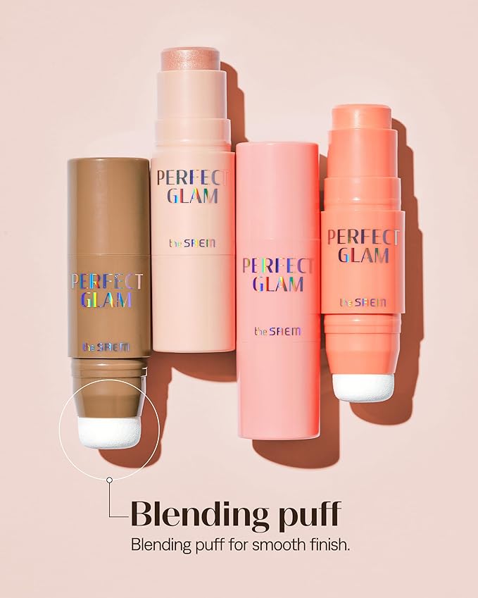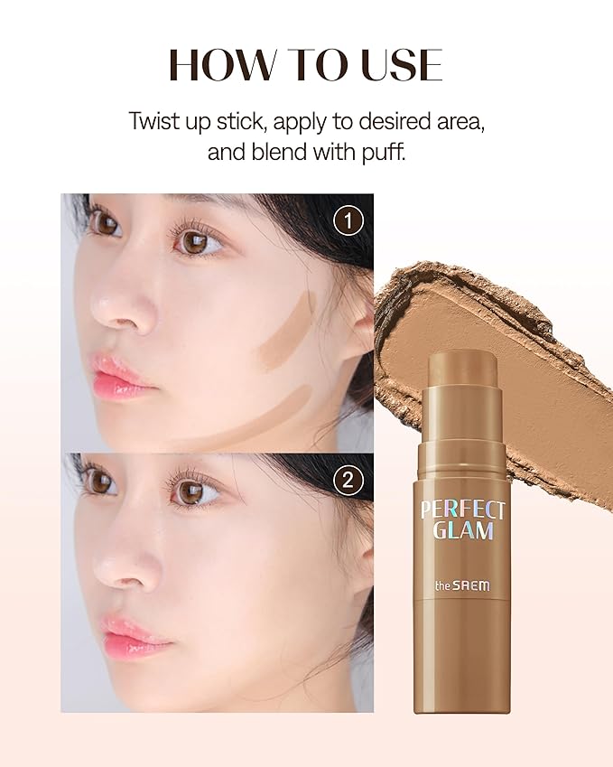 THESAEM Perfect Glam Stick Shading BR01 Brown Choux - Creamy Face Contour Taupe Brown - Ceramide, Shea Butter - Melting Cream Texture Natural Shadow Korean Makeup with Blending Puff, 0.2oz