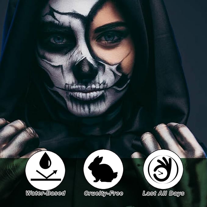 - PERFECT FOR ANY OCCASION:Whether you're preparing for a Halloween party, cosplay, or a special event, the set is versatile enough for any occasion. Create spooky designs looks like Clown Joker Devil Vampire Skeleton