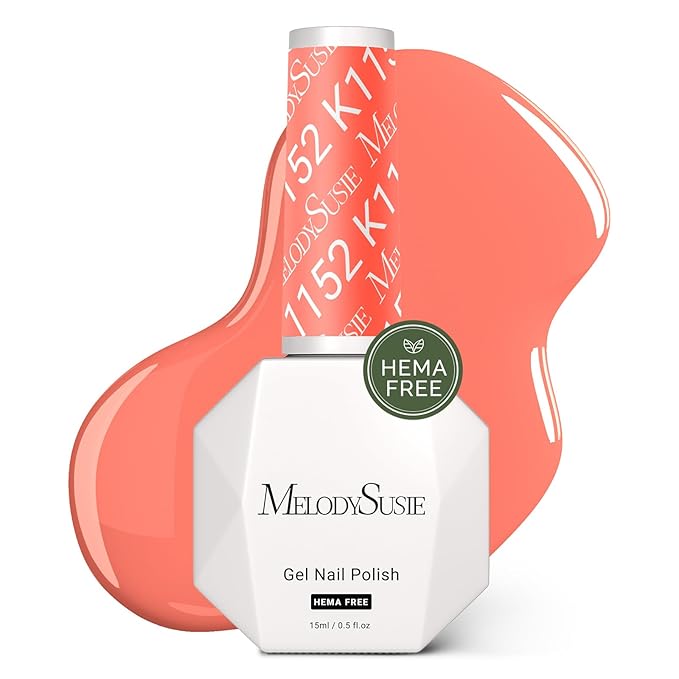 MelodySusie Hema Free Gel Nail Polish, 0.5 Fl Oz Thick Coral Orange Gel Polish, Non-Toxic, Long Lasting, Soak Off UV Nail Polish, Manicure Nail Design Salon DIY Nail Art at Home K1152