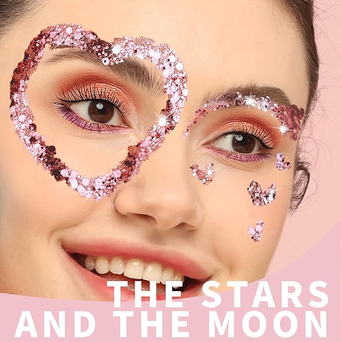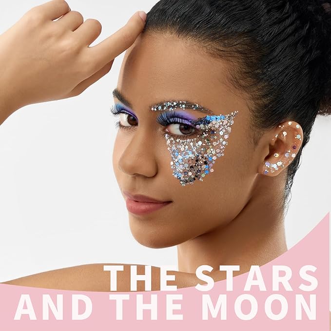 - All-in-One Glitter Makeup Kit: This kit is your go-to for all things glitter. Use it as face glitter, hair glitter, or body glitter to create stunning looks for any occasion. The smooth gel formula glides on effortlessly, making it easy to apply to your cheeks, hair, or body. Whether you're heading to a festival, concert or just want to add some everyday glam, this kit has everything you need. Use it to highlight your cheekbones, add hair glitter for kids, or create dazzling body art.