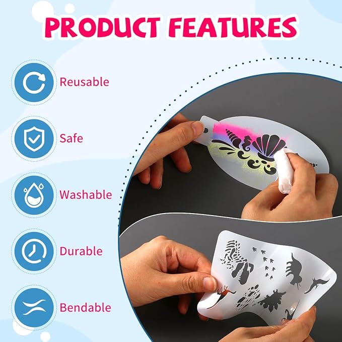 - Product Benefits : Enable easy and diverse face and body art creation with reusable stencils
