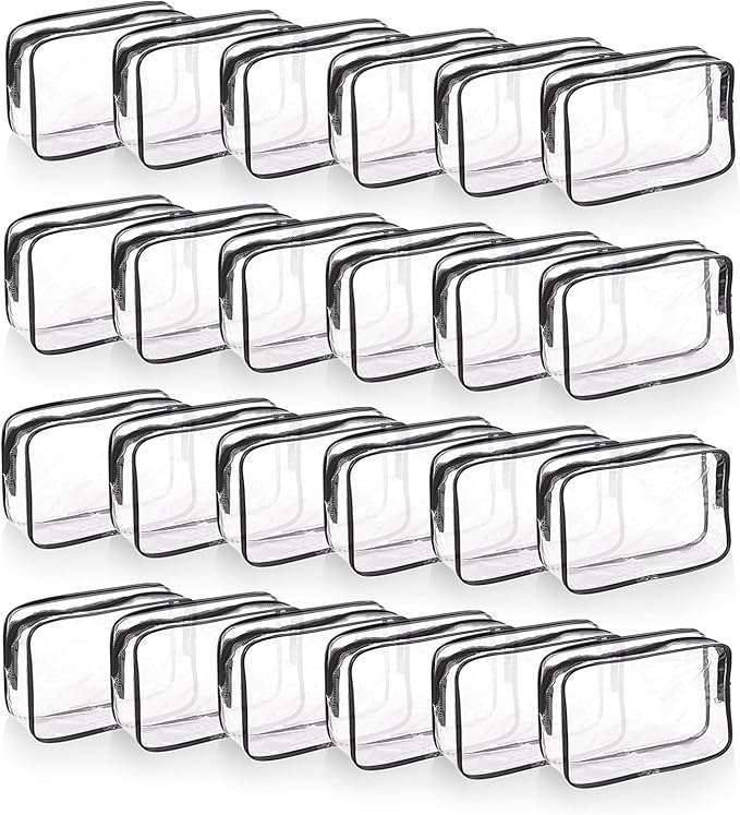 24 PCS Clear Makeup Bag with Zipper, Waterproof Transparent Toiletry Bag Organizer, PVC Portable Cosmetic Bags for Women Men Traveling Vacation Bathroom Home (Black)