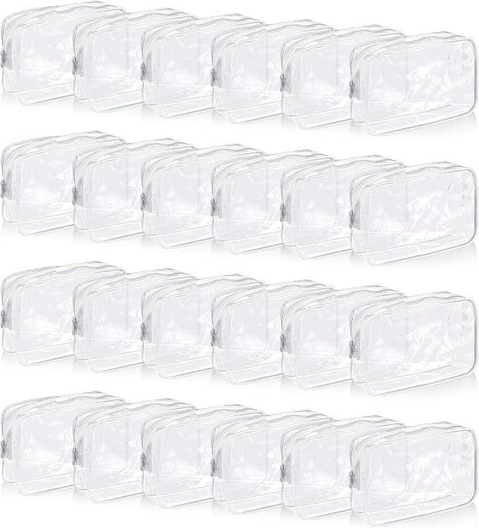 24 PCS Clear Makeup Bag with Zipper, Waterproof Transparent Toiletry Bag Organizer, PVC Portable Cosmetic Bags for Women Men Traveling Vacation Bathroom Home (White)