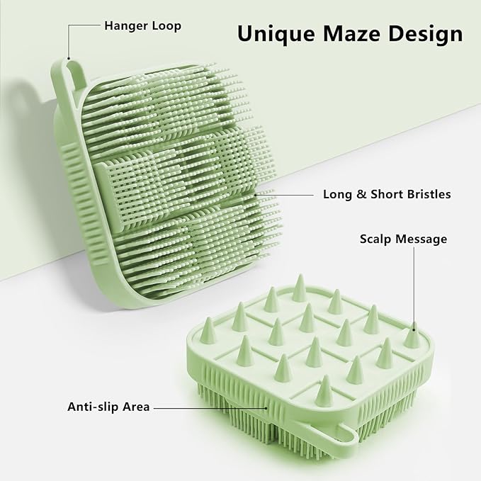 - Dual-Sided Bathing Brush: Mabnuby Silicone Shower Scrubber for body features 2 sides sud scrub - soft long bristles for body massager & cone brush for scalp hair massage scrub. The Advanced intensive bristles are not easy to deform, daily skin care.