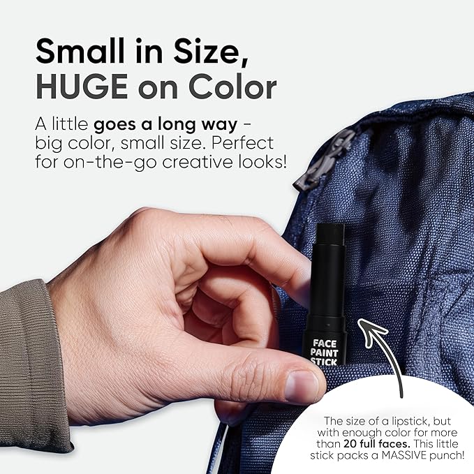 - โฑ๏ธ ๐๐น๐น ๐๐ฎ๐ ๐ช๐ฒ๐ฎ๐ฟ: Our Face Paint Sticks deliver all-day wear that stands up to anything. Formulated to be completely waterproof and sweat-resistant. From intense sports games to lively fancy dress parties, you can trust your look will remain flawless. The ultimate eye paint for baseball games. Tip: Hard to dry, so use setting powder or spray if applying to areas that may be touched. Removes easily with makeup remover.