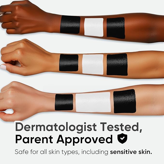 - ๐ฑ ๐ฆ๐ธ๐ถ๐ป-๐๐ฟ๐ถ๐ฒ๐ป๐ฑ๐น๐: Our black and white face paint eyeblack stick is made with a gentle vegan and hypoallergenic formula thatโs paraben-free and non-toxic, Blue Squidโs black and white face paint stick is suitable for sensitive skin perfect for both kids and adults. It wonโt itch or irritate - we even leave out gluten and harsh chemicals - so everyone can enjoy creative face painting with peace of mind.