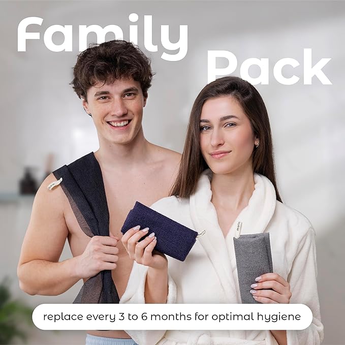 - Set of 3 Exfoliating Towels: Includes three shower towels, perfect for rotating between uses or sharing with family. Makes a thoughtful gift for anyone who enjoys self-care and healthier skin.