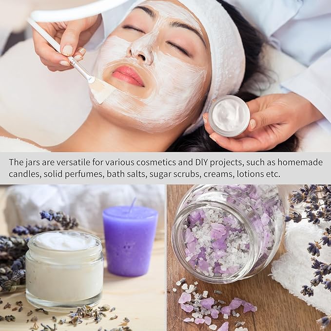 - Multifunctional Use: These 2oz glass jars are perfect for a variety of cosmetic products. Whether it's homemade lotions, essential oils, scrubs, body butter, lip balms or ointments, they offer an elegant solution for showcasing your creations.