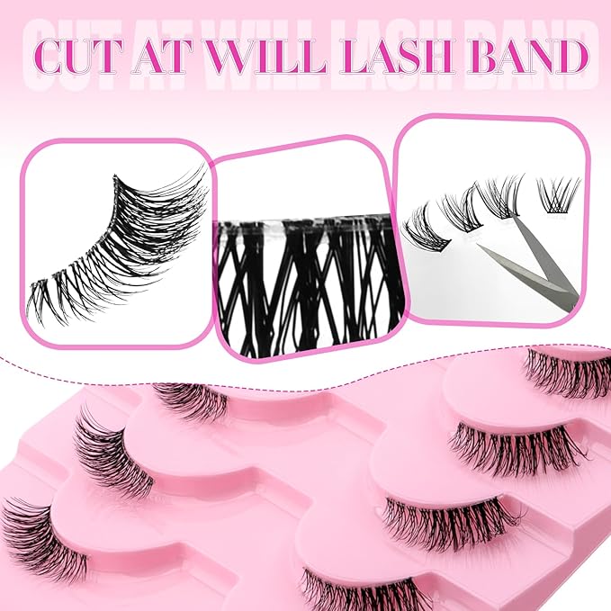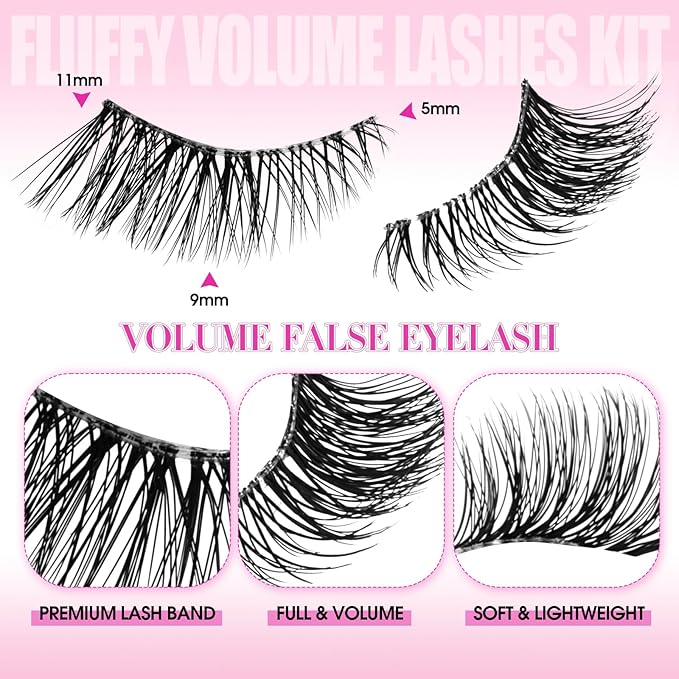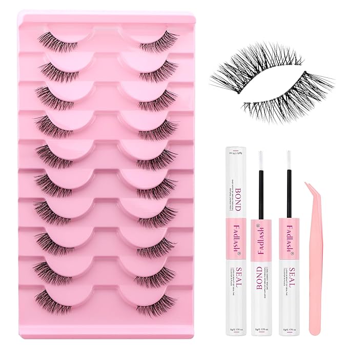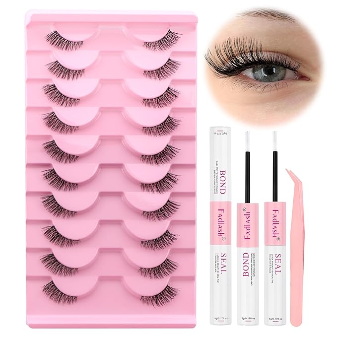 FADLASH False Eyelashes Kit 10 Pairs Faux Mink Lashes Wispy with Lash Bond and Seal and Tweezer Fake Eyelashes Natural Look Handmade Eyelashes Cat Eye Lashes Fake Lashes Strips (BY001 Kit)