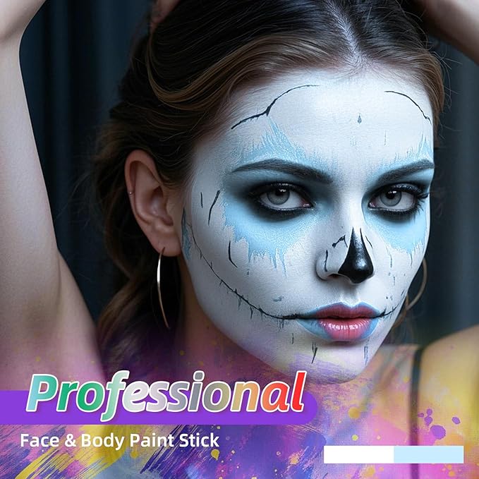 - [DURABLE & EASY TO USE]: Each color in our body paint collection provides rich pigmentation that lasts all day. Whether you're looking for intricate details or plain patterns, just use a makeup brush or makeup sponge or even your finger, and you can create any artwork you want on your body, your face. If you want it to last longer on your skin you can use it with a setting spray. Note: Our face paint is not waterproof (do not apply body paint when it is raining)
