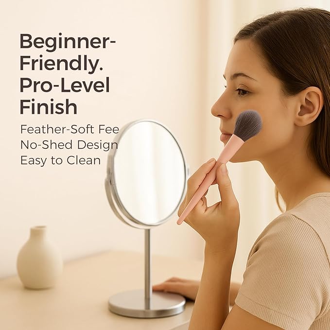 - SOFT VEGAN BRISTLES, EASY TO CLEAN:Crafted from premium Taklon fibers, these fluffy, high-density bristles pick up product evenly and blend smoothly. Gentle on skin, shed-resistant and easy to clean—ideal for powders, creams and liquids. These are reliable brushes for makeup that pamper your skin.