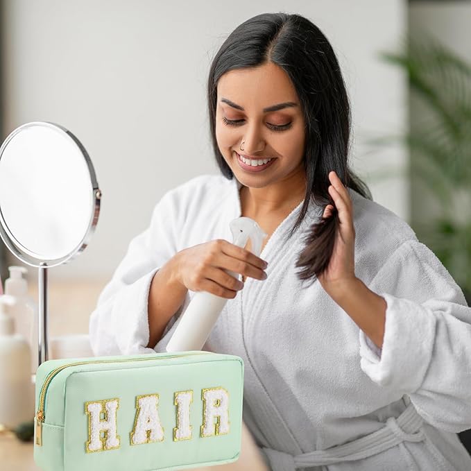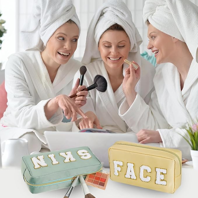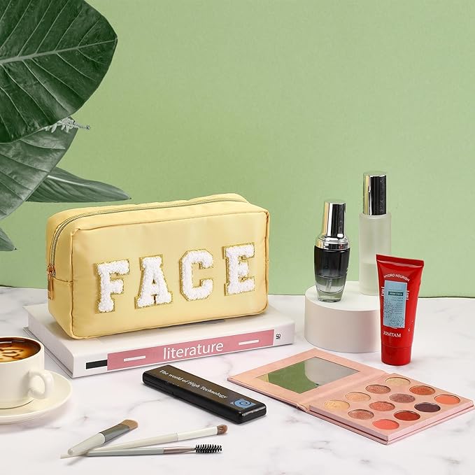 • Reliable to Apply: preppy makeup organizer with chenille letter patch is mainly made of nylon material, which is waterproof to some extent, with sponge inside to better prevent your belongings from scratching; They are nylon pouch with zipper, easy to open and close smoothly, not easy to rust