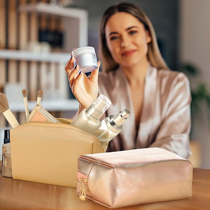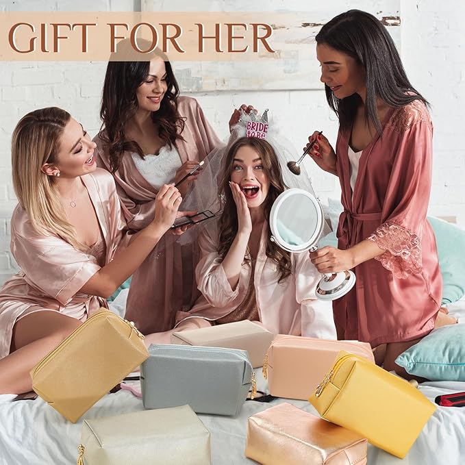 Sanwuta 9 Pcs Makeup Bags Bulk PU Double Zippers Cosmetic Bag Makeup Toiletry Pouch Portable Travel Organizers Case for Women Bachelorette Party End of The Year Bridesmaid Gift(Pearl Color)