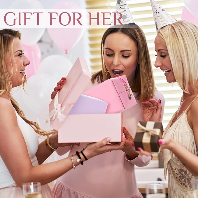 Sanwuta 9 Pcs Makeup Bags Bulk PU Double Zippers Cosmetic Bag Makeup Toiletry Pouch Portable Travel Organizers Case for Women Bachelorette Party End of The Year Bridesmaid Gift(Pink Purple Series)