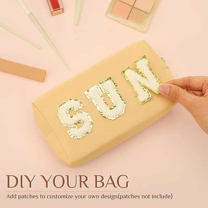 - Waterproof and Easy to Clean: preppy makeup bag is made of PU leather, which is waterproof, light and soft to avoid the inside things getting wet; Besides, you do not need to worry about it getting dirty, which is easy to clean; Just wipe the stain with a damp cloth; The leather toiletry bag is blank, does not contain letter patches; The patches in the pictures mainly show that the product can be DIY by yourself