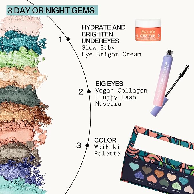 Pacifica Eyeshadow Palette – Waikiki Mineral Eyeshadow, Blendable Shimmer & Matte Shades w/Velvet Matte, Shimmer & Metallic, Cocoa Butter Infused, Talc-Free, Vegan & Cruelty-Free, 0.24 oz 10 Shades