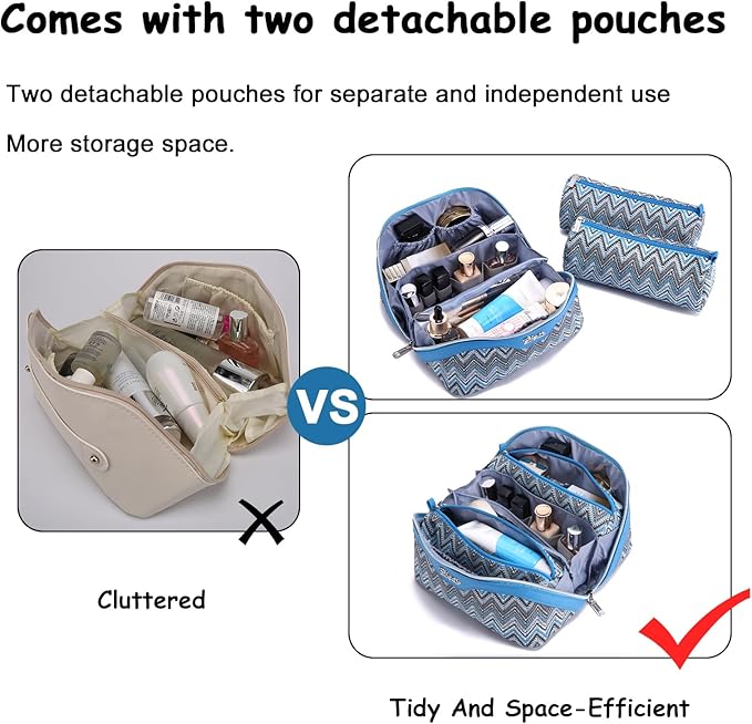 - 3 Pcs Makeup Bags Set: This travel cosmetic bags set comes with two detachable zipper small bags. Five precision-crafted compartments keep skincare and cosmetics flawlessly sorted, designed for seamless transitions between travel, business trips, outdoor adventures, and leisure escapes.