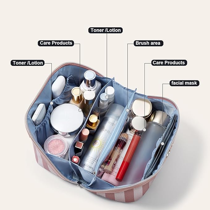 - Multifunctional Travel Makeup Bag with Compartments: This leather waterproof cosmetic bag is perfect for any setting - whether on your dresser, in the bathroom, outdoors, in the car, on the train, or packed in your luggage. It keeps your makeup organized and easily accessible, so you can meet your beauty needs anytime, anywhere.