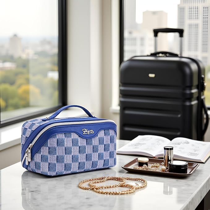 - Checkered Makeup Bag Set of 3: This travel makeup bag set includes three versatile bags, each designed with unique checkered patterns. The set features two detachable zipper storage bags and multiple compartments, providing optimal organization for your skincare products and cosmetics. Perfect for travel, daily use, and special occasions.