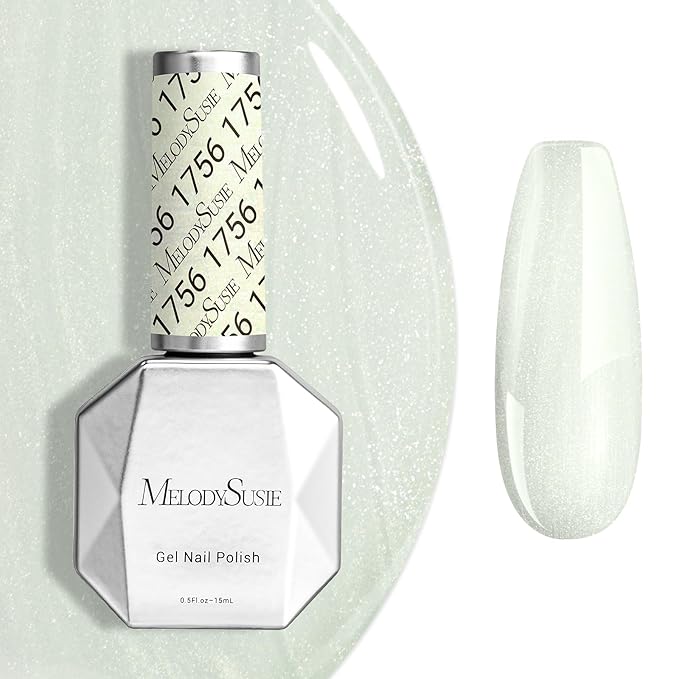 MelodySusie White Shimmer Gel Nail Polish,0.5fl oz Soak Off UV LED Green White Sparkle Gel Polish Gift for Women Nail Art Manicure Salon DIY Nail Design Decoration at Home-1756