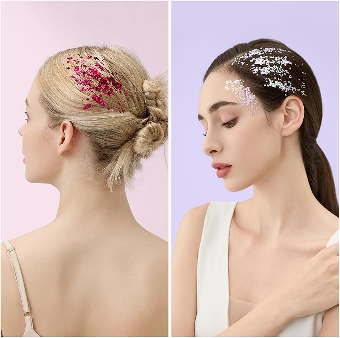 - FACE, BODY & HAIR GLITTER GEL - Unleash a multiverse of sparkle with this body glitter gel—morph it into bold winged eyeliner, ethereal hair highlights, or body art that steals attention. Layer micro-glitter shards with velvet-fine particles for jaw-dropping 3D depth, or blend gradients for moonlit ombre transitions