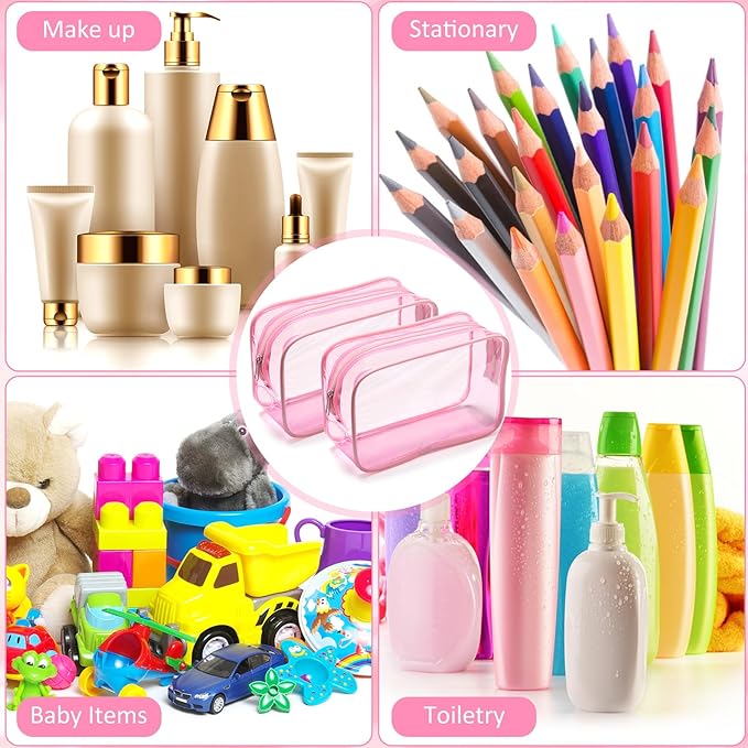 Weewooday 12 Pieces Clear Makeup Bags Cosmetic Storage Bags PVC Zipper Pouches Travel Waterproof Makeup Plastic Case for Women Organizing Toiletries Traveling Bathroom(Large,Light Pink)