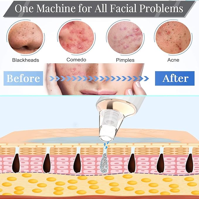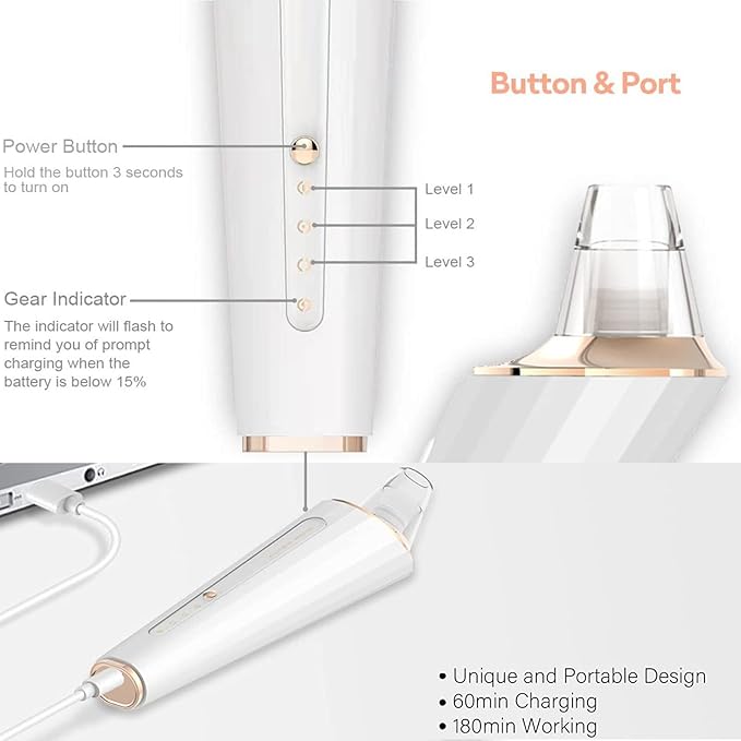About This ♕【Powerful Blackhead Vacuum Tech】The blackhead remover ultra-powerful suction level, Maximum to 60kp. Effectively cleans the oil, blackhead, grease... Read more