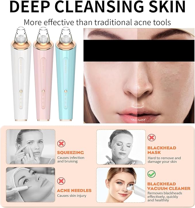 Blackhead Remover Pore Vacuum, Upgraded USB Rechargeable Facial Pore Cleaner Blackhead Removal Kit with 3 Suction Power,5 Probes Black Head Extractions Tool for Women & Men