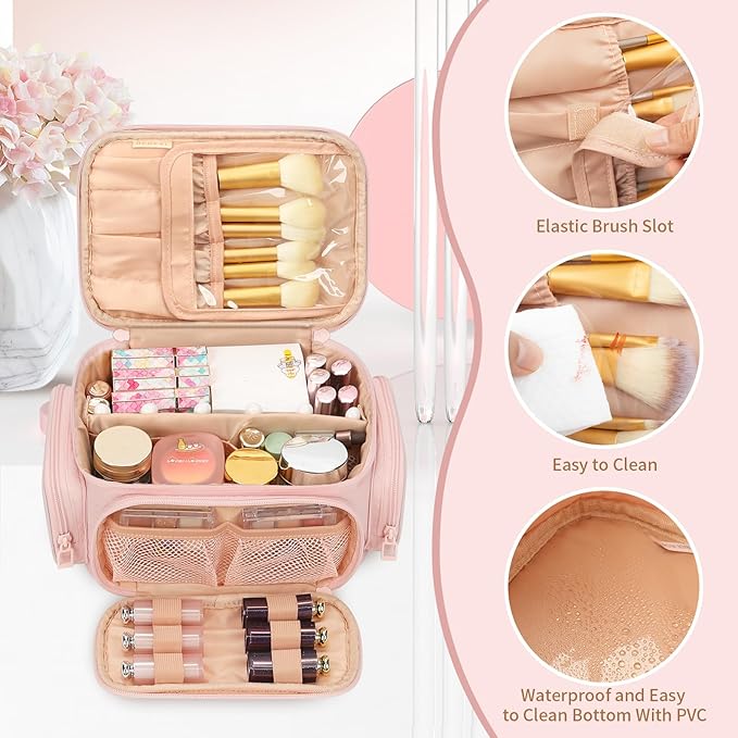 - Durable & Waterproof Construction--Crafted with premium water-resistant PU leather and reinforced stitching, this Travel Makeup Bag safeguards contents from spills. The padded interior and dual-zip closure make it a reliable Cosmetic Organizer for professionals, while the integrated handle ensures easy carrying as a Vanity Case or Beauty Bag