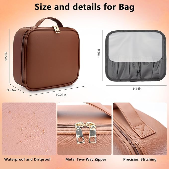 - 【Movable&Adjustable Dividers】The travel makeup bag is equipped with 6 different sizes of dividers, according to different cosmetics DIY different storage space, say goodbye to the messy travel makeup organizer, can well protect cosmetics from damage and leakage. Comes with a separate makeup brush storage bag to keep the travel makeup bag clean and dry.