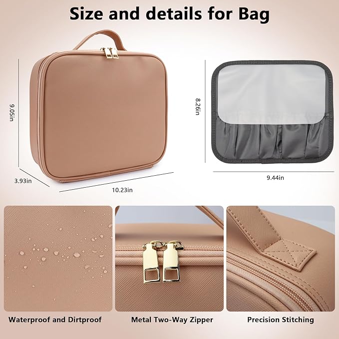 - 【Movable&Adjustable Dividers】The travel makeup bag is equipped with 6 different sizes of dividers, according to different cosmetics DIY different storage space, say goodbye to the messy travel makeup organizer, can well protect cosmetics from damage and leakage. Comes with a separate makeup brush storage bag to keep the travel makeup bag clean and dry.