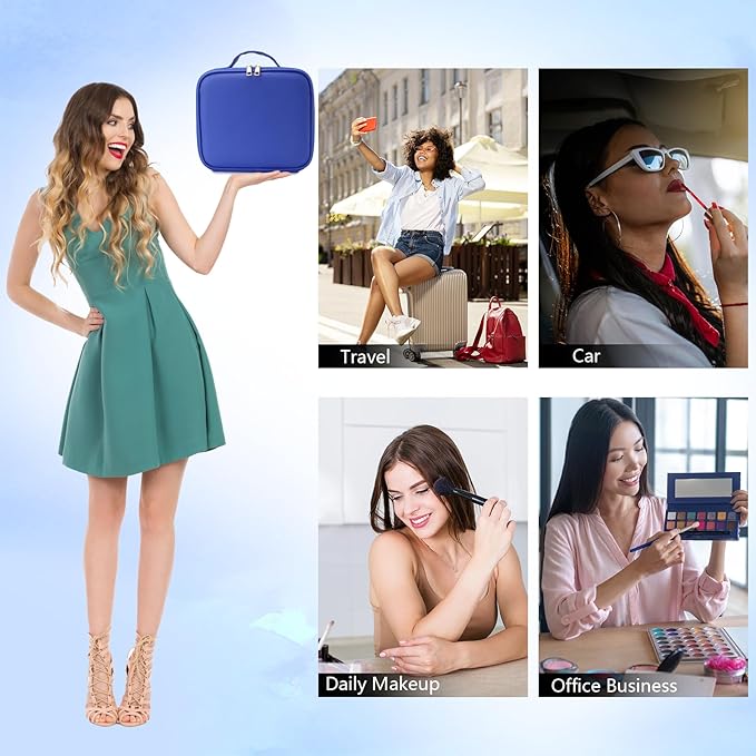 - 【Suitable For Various Scenarios】SLUMAZI travel makeup organizer with LED mirror can not only hold cosmetics, but also can put toiletries, skin care products, jewelry, electronic accessories, valuables, etc. Suitable for various scenarios, such as: home, travel, business trips, etc., is also a good gift.