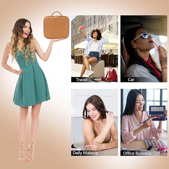 - 【Suitable For Various Scenarios】SLUMAZI travel makeup organizer with LED mirror can not only hold cosmetics, but also can put toiletries, skin care products, jewelry, electronic accessories, valuables, etc. Suitable for various scenarios, such as: home, travel, business trips, etc., is also a good gift.