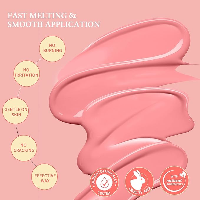 - ROSE EXTRACT FOR A LUXURIOUS WAXING EXPERIENCE: Infused with natural rose extract, our wax enhances your waxing routine with a touch of elegance while effectively removing both coarse and fine hairs. The delicate rose essence complements the skin, helping it feel soft, smooth, and pampered after each use. Enjoy salon-quality hair removal and a spa-like experience in the comfort of your home!