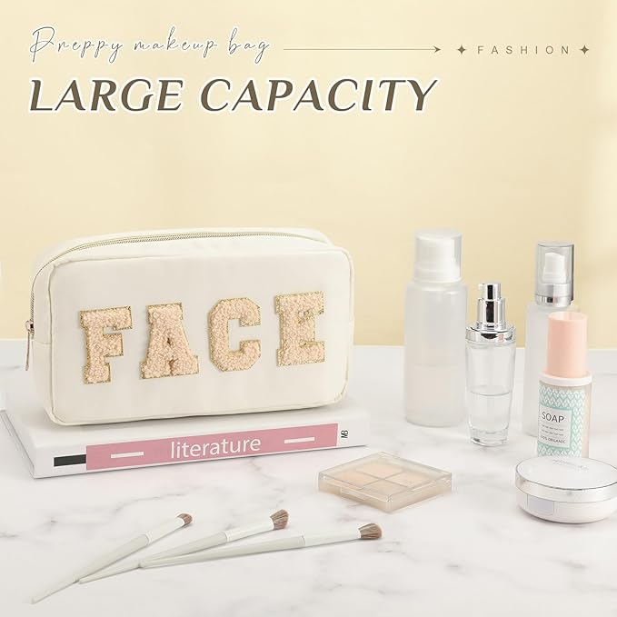 • Reliable to Apply: preppy makeup organizer with chenille letter patch is mainly made of nylon material, which is waterproof to some extent, with sponge inside to better prevent your belongings from scratching; They are nylon pouch with zipper, easy to open and close smoothly, not easy to rust