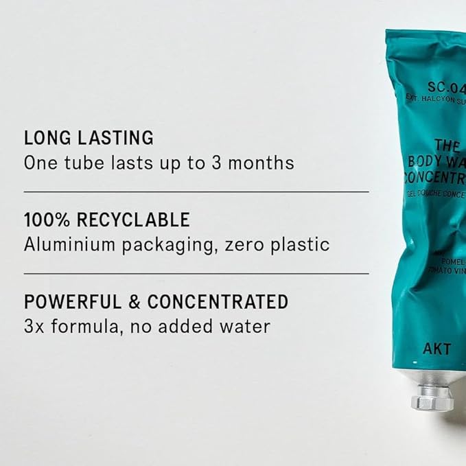 - Plastic-Free, Vegan Body Wash in Aluminium Tube: Made in the UK, this concentrated wash is housed in a 100% recyclable aluminium tube. It’s certified vegan and cruelty-free — a conscious, sustainable choice that fits effortlessly into your daily performance ritual.