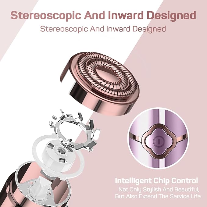 - Painless Hair Removal for Sensitive Skin: Designed for sensitive skin! Featuring an 18K gold-plated replacement head to minimize friction and irritation, combined with Butterfly Technology—using a microscopic-level rotating blade and flat cover system to precisely remove fine hairs without pulling the skin. The built-in safety guard ensures a gentle, pain-free experience, eliminating redness or cuts. Perfect for removing peach fuzz on the face, upper lip and other delicate areas.